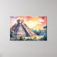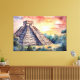 Canvas with Chichen Itza, Mexico. Beautiful painted El Castillo Pyramid, ruins of Maya Empire.