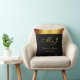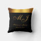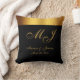 Chick Black Gold Monogram Script Wedding Throw Pillow