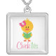 A cute and girly chick wears a pink bow with a green and white daisy on it while reading a hard back green book. Artwork © Chrissy H. Studios, LLC. All Rights Reserved.