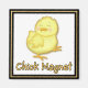 Humor with adorable baby rooster. Grinning yellow chick has text... " Chick Magnet"