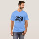 My 11 yo wore adult XL (5’7” 165#). The 8yo is small framed. She wore adult small and tied it in the back. Grandma wore adult large with long sleeve shirt underneath. Tall girl adult medium. Dark haired male adult large. Good quality dark Heather gray, Gildan brand shirt. -it was next up from basic choice and cost about $20 per shirt. Not too thick or thin. Washed and dried well, no major shrinkage. Not see-through. Can wear a bra under it fine. Screen print is just as shown and well done, front and back.