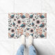 Cute and sweet chickadee bird and berry repeat pattern and floral design Door Mat. Multi colored design: pink, gray, black, rust, and teal palette. Mix and match other products from my "Sweetdee" Collection for a coordinated look. Design by Jenn's Emporium.