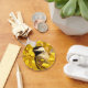 Here is a floral keychain featuring an adorable black and white chickadee among gold and yellow forsythia flowers. This sweet little bird is one of the friendliest creatures in the animal kingdom. A great idea for gardeners or birders!