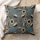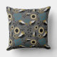 Trendy pattern with birds, flowers, branches with berries on gray throw pillow. A chic case with gray background with gold and black birds, teal accents, and flowers in stylized art pattern. Easy to personalize with your initial. Design from Jenn's Emporium.