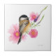 Chickadee Black Capped Flowers Watercolor Art Ceramic Tile