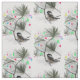 This sweet animal fabric design paints a picture of the chickadee's holiday Christmas tree in a repeating abstract pattern. Pine branches in the snow are decorated with tiny ornaments. A sweet little black capped chickadee bird sits on the lower branch.