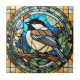 Chickadee Faux Stained Glass Great Tit Bird Ceramic Tile