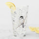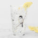 A color pencil drawing of a lovely little Chickadee bird adorns this customizable glass!