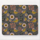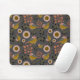 Chickadee Gold Pink Black Berries Flowers Pattern Mouse Pad