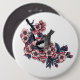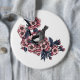 Hand drawn vector illustration with branch of cherry blossom and chickadee bird