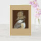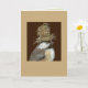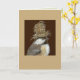 card with chickadee wearing a top hat of nesting materials.