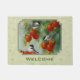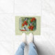 Birds in the apple orchard during the autumn harvest. Two black-capped chickadees perch in an apple tree while a third chickadee sits on a basket filled with ripe, freshly harvested fruit ready for market. All on a cheerful green patterned background. Realistic artwork created from an original oil painting by wildlife artist Crista S. Forest.