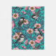 Chickadees in the wild rose, pink and blue fleece blanket