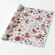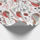 Chickadees Red Gray Pattern With Floral Wrapping Paper