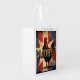 I own a lot of reusable grocery bags, but this one holds its box shape and simply stands up on its own even if there is nothing in it. Its stiffer than your regular reusable bag too, and the material is water resistant. I poured water on the exterior and it didn't penetrate inside to the other side. I'm buying a couple more. Wish I knew how durable these bags were or I would have purchased a few more with my initial order. I also like how it folds and buttons up when not in use, making it easy to put into a handbag or luggage. I haven't used this bag yet, as I purchased it for travel use, like when you're at the airport and need to small sturdy bag to place any airport purchases in, like food, souvenirs etc. I can tell you when you first see this bag, it looks very cheap, but after closer inspection of the material and the seams its a very sturdy reusable bag. I tested it out by putting some really heavy objects inside and I could not observe any stress to the bag at all. Another thing I like about it, is the fact the medium size that this is makes it easy to just carry it in your hand without the bottom of the bag scraping the ground, like most other bags do when you're short. That alone, deserves 5 stars. I just wish there were more colors to choose from! The PDX Airport Carpet printing looks just like the photo, and using this bag during travel might be a conversation piece when/if a native from Oregon happens to see it.