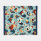 Chickens and Roosters Seamless Pattern Design. Farm animals; Rooster and Hen Graphic Design. White, blue, red, and orange.