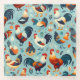 Chickens and Roosters Seamless Pattern Design. Farm animals; Rooster and Hen Graphic Design. White, blue, red, and orange.