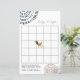 Baby bingo game with directions at top and with 5x5 squares and hen with baby chick at center with boho designs at corners.