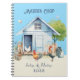 Coop manager, spiral bound notebook, size 6x8 inches. Light blue chicken coop design. Chickens, rooster, flowers, tree, jug and shovel are also part of the design. A bright blue sky and birds flying complete the rural farm theme. Personalize with a title, "sales and notes" and year. Homesteaders can use for coop building, chicken raising, and egg selling notes. Perfect for adults and kids.