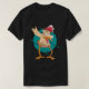 My 11 yo wore adult XL (5’7” 165#). The 8yo is small framed. She wore adult small and tied it in the back. Grandma wore adult large with long sleeve shirt underneath. Tall girl adult medium. Dark haired male adult large. Good quality dark Heather gray, Gildan brand shirt. -it was next up from basic choice and cost about $20 per shirt. Not too thick or thin. Washed and dried well, no major shrinkage. Not see-through. Can wear a bra under it fine. Screen print is just as shown and well done, front and back.