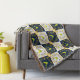 A quality printed throw has its advantages. This is a much finer weave throw than its loopier cousins, and though lighter, it is worth the investment for custom room accessorizing. The back is much prettier than the typical brown, and the fringe on the long sides very vivid, the selvage nicely done. Before photographing, I washed the throw in cold water, delicate, with a thicker woven throw the same size. On tumble dry low, this throw was dry in half the time as the other. This is a very practical quality if you use throws for furniture covers or to wrap up in frequently. The sleekness of the fabric makes it a great layer for accenting or protecting without the feeling of sitting on too much stuff. Perfect for napping or when you feel a light chill coming on. The color printing is beautiful and on this fabric, matched the design and color of my Photoshop image. This is an advantage for blending room fabrics and colors. The fringe on the short sides prints the colors from the design image and therefore varies from the side fringe. I streaked a white fractal line through the plaid pattern to give the illusion of weaving. This printed as crisp as an illusory thread, and put some white in the short side fringe, showing another advantage of print vs loomed- for artistic purposes, line lines, detail, and color integrity can be planned and preserved. My loomed throws have color limitations and more of a needlepoint texture. Print throws reproduce an exact image. The throw felt a little stiff straight out of the package, but this went away in the first delicate wash. Of course I searched the wash water for ink or bleeding and there was none.