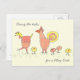 Cute chicken family play date postcard invitation. Get together with other mothers and their kids. This cute, illustrated design has a family of chickens in pink and yellow. Customize the back with party / gathering information.