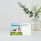 Small Chicken farm card with small child and chicken in flowy watercolor style.