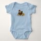 I love this onesie, it's adorable! The material is amazing so soft and the color is a perfect sky blue. When my daughter-in asked me to help with her Baby Shower, I was thrilled. It was co-ed & the theme was Cookie Monster. I had no idea that the whole world was after that big blue Monster. Thank goodness for Zazzle, I got most of the party supplies here. Then I found this onesie! They made my customization so easy. The colors are awesome. I wrote the word "Loved" across the bottom of the Cookie Monster in red letters when I was putting it together. I saw the preview & liked it. But to see it in person, OH, it was fantastic, they do exceptional work! I am so glad that I found this onesie/bodysuit. The production time and shipping were exactly what I was told, which made it easy to plan the party. Packaging was nice as well. If you are looking at this product, look no further, I highly recommend it! I'm certain that I'll be back to "design" whatever my new Grandson "needs.". The printing on the onesie/bodysuit is crisp, and clean. With perfect colors that blend well with the blue background of the basic material. We are so happy with how it came out.