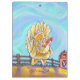 Animal Parade Chicken brought to you by ITD Animal Parade features our original art of a cute yellow and golden chicken standing in a barnyard in front of a red barn and fence with a textured blue sky with a playful wavy purple border. Painted by our talented children's artist, Traci Van Wagoner.