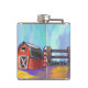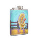 Well made flask, a little better than I had expected. Flask came in clear plastic box which gave it a nice presentation when I took it out of the zazzle packaging. Image is not printed on flask but on sticker. Don't know how this will hold up I haven't used it yet. This would make a Great gift! I plan to purchase more for friends! Cheers. I thought a little brighter than computer. Very crisp, writing wasn't