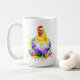 Pretty watercolor ai art depicting a cute colorful chicken. The back of the mug has the quote, "Chicken Lover, Fueled by Coffee" on the back. Sweet gift for someone who loves their backyard chickens.