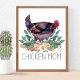Watercolor Chicken with Flowers and text "Chicken Mom" .Text ready for your info.