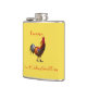 The Personalized hip flask is in yellow with a Chicken wishing you 'A Clucking Good Day'