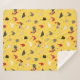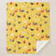 This chicken Sherpa blanket has a Memphis style look with a chicken farm theme. Modern geometric patterns are used in the design to color roosters and chickens in a pastor with a yellow chicken wire background. There are two big roosters and ten lovely hens in this pattern. A fun updated chicken pattern for a modern country look. Perfect for anyone that is chicken crazy. You can make the pattern smaller or larger.