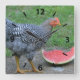This wall clock features one of our barred rock hens that LOVES watermelon! Great for chicken lovers!