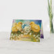CHICKENS,FLOWERS ,EASTER EGG IN GOLD BLUE SPARKLES HOLIDAY CARD