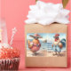 This whimsical beach-themed illustration features a charming chicken couple soaking up the sun in their finest vacation attire. The hen dons a retro red polka dot dress with a wide sun hat and oversized sunglasses, while the rooster sports stylish blue-and-white striped swim trunks and shades, all set against a serene seaside backdrop with sailboats, seagulls, and gentle waves. The soft pastel palette and painterly style add a dreamy, lighthearted feel that evokes summer relaxation and quirky humor. Ideal for lovers of funny animal designs, coastal themes, or retro fashion, this playful image brings personality and warmth to any setting. Whether displayed in a beach house, kitchen, or shared online for a smile, it invites joy and imagination. AI generated artwork.