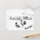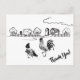 This Thank You! postcard features chickens a rooster and hen on a charming country farm line drawing in black and white.