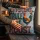 This bold and charming design features a proud rooster standing tall on a wooden perch, surrounded by vintage-inspired typography that declares, "Chickens Rule the Roost." With warm earthy tones and rustic western lettering, this illustration captures the essence of country living and barnyard charm. The playful yet classic style makes it perfect for those who appreciate farm life, cozy farmhouse aesthetics, and lighthearted humor. A touch of vintage illustration and traditional folk art elements bring a timeless appeal, making it a standout choice for lovers of rural charm and countryside vibes. AI generated artwork.