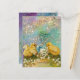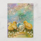 CHICKENS, SNOWDROPS AND EASTER EGG WITH BLUE BOW HOLIDAY POSTCARD