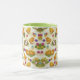 White and lime 11 oz. combo mug with an image of downy yellow chicks, pink eggs in green nests, and pretty pink, blue, purple and yellow flowers. See matching paper plate and square ceramic tile. See the entire Easter Mug collection under the HOME category in the HOLIDAYS section.