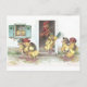 Chicks leave school carrying backpacks and writing tablets under the watchful eye of rooster with pointer. From a vintage postcard circa 1909.