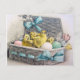 Chicks in basket with eggs and flowers postcard
