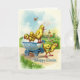 These adorable chicks in a wagon are here to wish a Happy Easter from this brightly colored vintage Easter postcard reprinted on this greeting card.