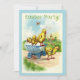 These adorable chicks in a wagon are here to wish a Happy Easter from this brightly colored vintage Easter postcard reprinted on an Easter party invitation.