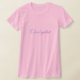 My overall review is that the T-shirt is nice, it fits true to size however the font is significantly smaller than advertised and you can't read it. The printing is unreadable and there is a strain to read it. It does not look like the advertised product. Maybe the shirt color is darker or a larger more visible font should have been used. Photos with and without flash and font is barely legible.