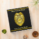 For the chief cook and bottle washer. A police badge with text reading "CHIEF" and "KITCHEN POLICE." Customize by adding your own text on the shield (it will appear on the shields on both front and back), in two further places on the front, and yet another on the spine.