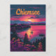 A charming and nostalgic depiction of Chiemsee, a picturesque lake in Bavaria, Germany, known for its crystal-clear waters and scenic surroundings. The design captures the lake's serene beauty with views of the Fraueninsel (Island of Women) and Herreninsel (Island of Men), featuring historic buildings like the Frauenwörth Abbey and the majestic Herrenchiemsee Palace. Rendered in a vintage style, the artwork evokes the tranquil atmosphere and cultural richness of Chiemsee, inviting viewers to experience its idyllic landscapes and historical landmarks.
