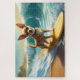Chihuahua Beach Surfing Painting Jigsaw Puzzle