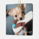 Chihuahua Christmas ornament (double-sided square ceramic ornament) with customizable text and photo - you can add your dog's photo and name. It measures 2.87 inches by 2.87 inches and weights 1.4 ounces.